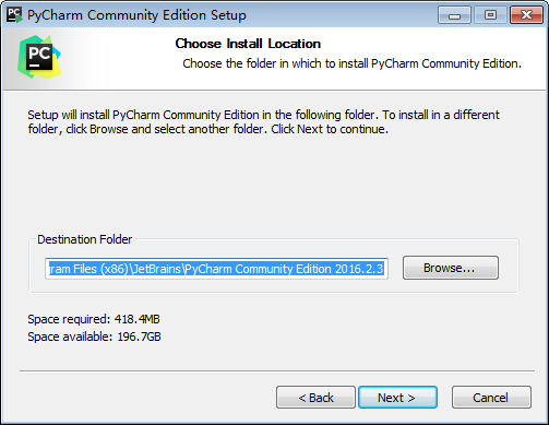 双击pycharm-community-2016.2.3.exe,一般按正常的默认安装项就可以了
