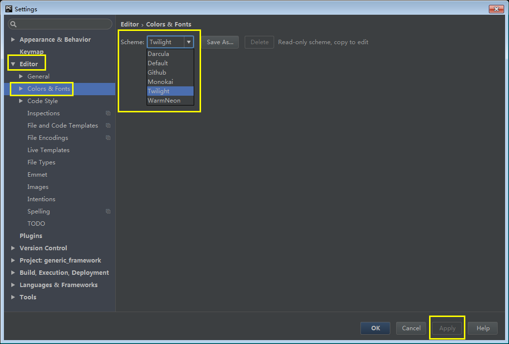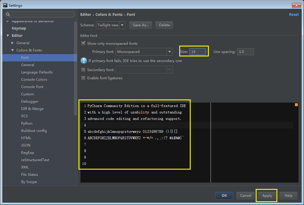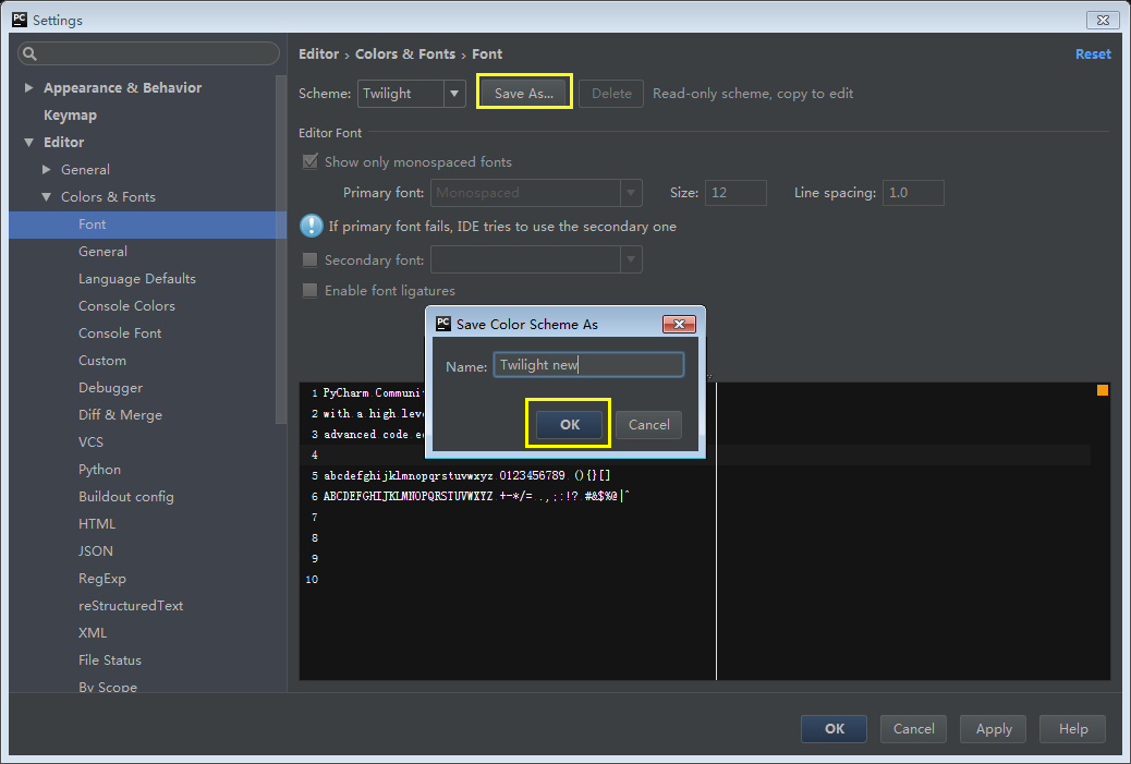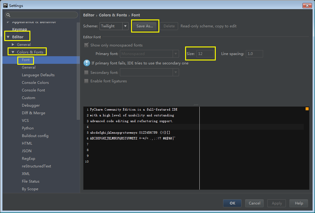 使用默认项时,字体大小无法直接进行修改,点击Save As... 另存为后就可以修改