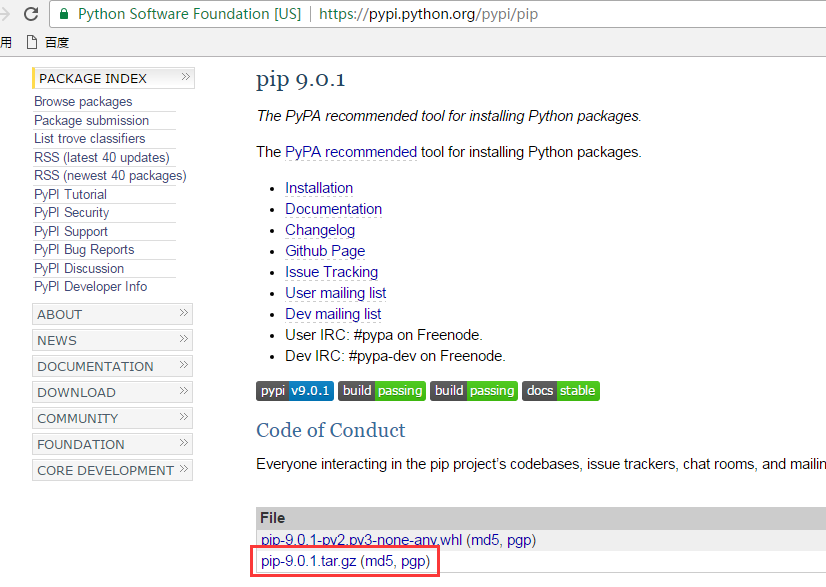 在浏览器地址栏中输入:https://pypi.python.org/pypi/pip