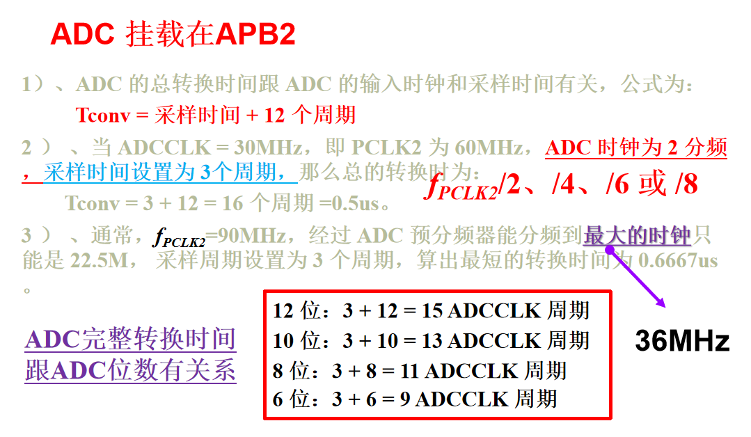 ADC转换时间:时钟为56MHz时,ADC最短转换时间为1μs