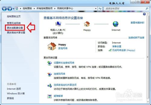 网络和共享中心→更改适配器设置