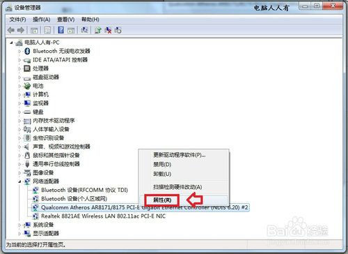 打开网络适配器→找到网卡(有线或者无线)→属性