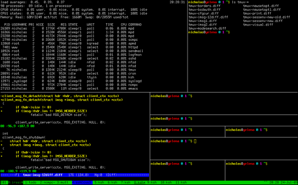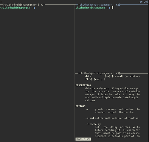 dtach 是用来模拟screen的detach的功能的小工具,其可以让你随意地attach到各种会话上 。下图为dtach+dvtm的样子。