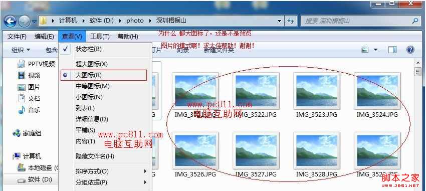 在电脑中的一些图片中我们一般都可以预览到这些图片,而有时也许因为windows7系统设置又或者查看方式不对,而导致不管怎么调节图标的大小都无法进行图片的预览。