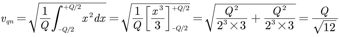 假设量化误差在±Q/2的范围内平均分布,则通过均方差计算出的量化噪声(quantization noise)为: