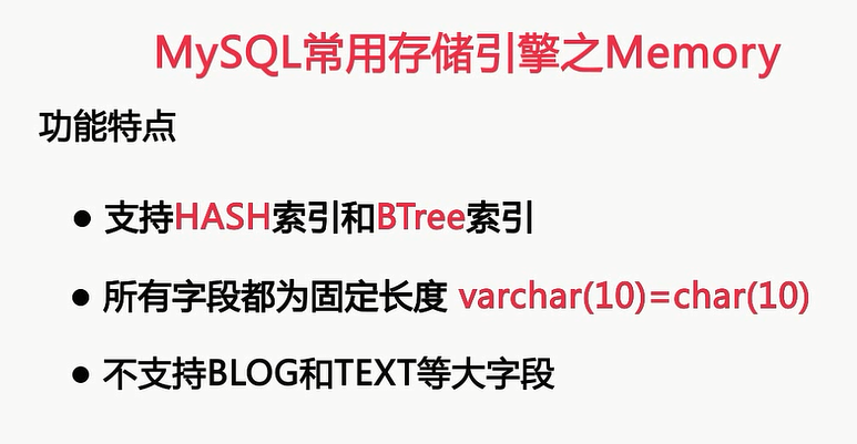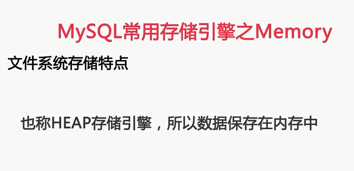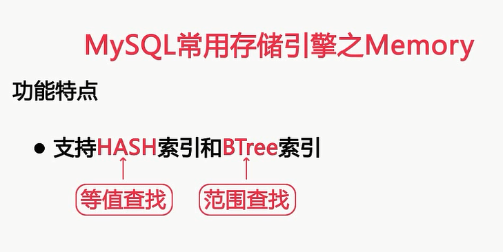 操作系统来缓存的,而Memory存储的数据和索引呢,全都是在内存中的,接下来我们先来看一看Memory存储引擎的功能特点,再来给大家