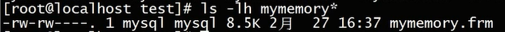 大家看到这里只有 一个frm文件,所以这里也从另一点说明呢,memory存储引擎的表呢,是不存在数据存储文件的,