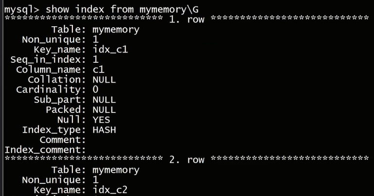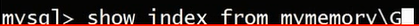 show index from mymemoryG