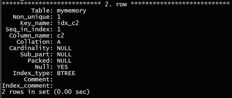 create index idx_c2 using btree on mymemory(c2);