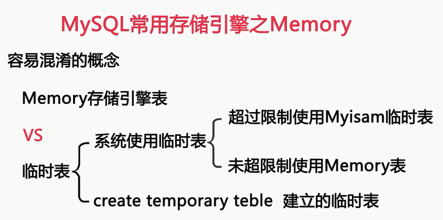 表呢,所以memory存储引擎的表并不是临时表,另外对于系统使用的临时表来说,有两种情况,在限制以内会使用Memory存储