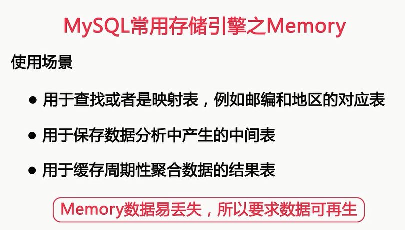 周期记录聚合表的使用,不过无论哪种场景呢,要注意一点,memory存储引擎的表呢,MYSQL重启以后就会丢失,