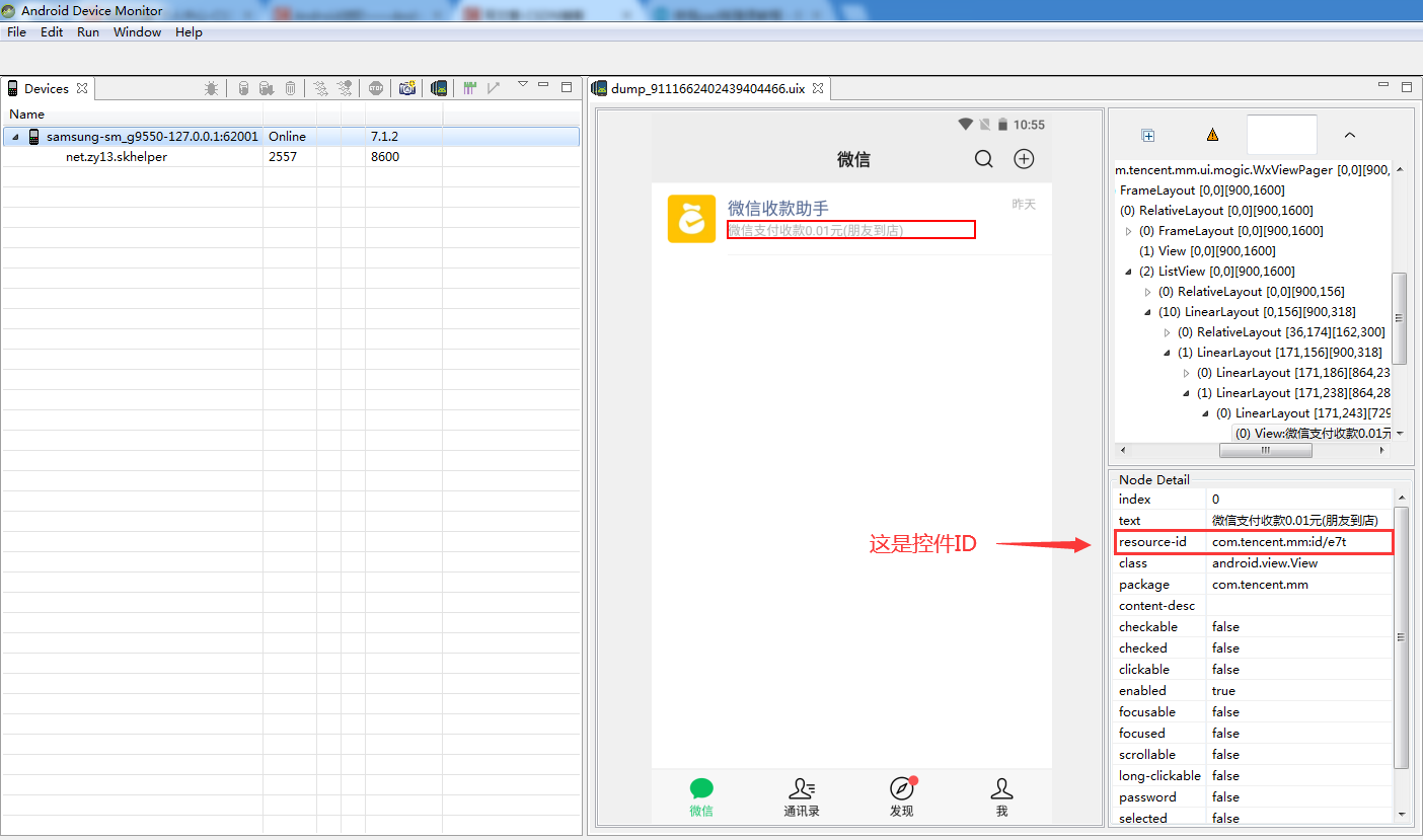 // 通过控件ID找到对应的节点集合,如com.tencent.mm:id/gd