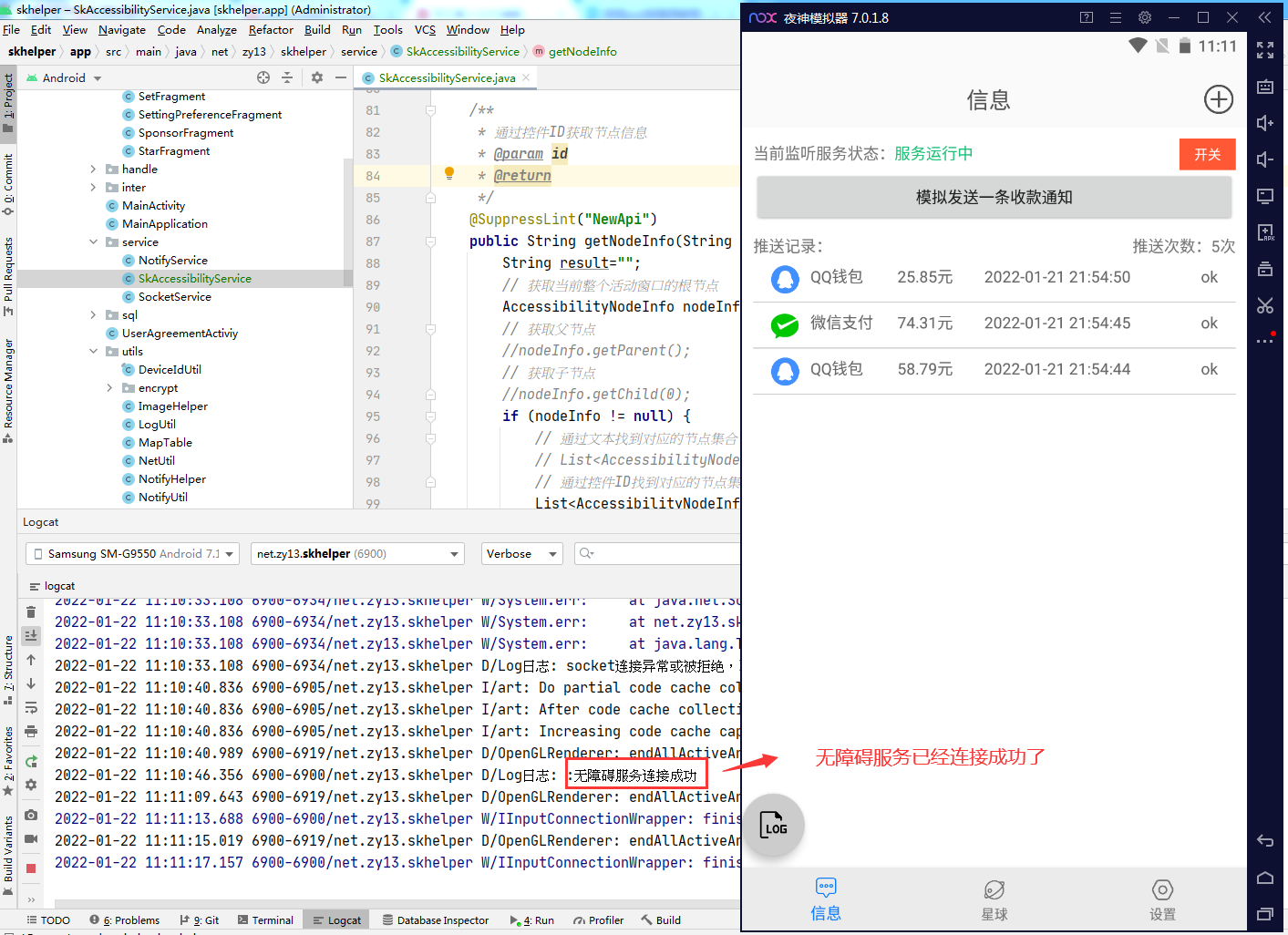 以上就是独特小丸子最近收集整理的关于安卓使用无障碍服务监听微信和QQ的收款信息导读:准备工作:步骤:的全部内容,更多相关安卓使用无障碍服务监听微信和QQ内容请搜索靠谱客的其他文章。