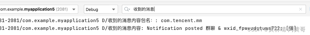 Log.d("收到的消息内容包名:", notificationPkg)
