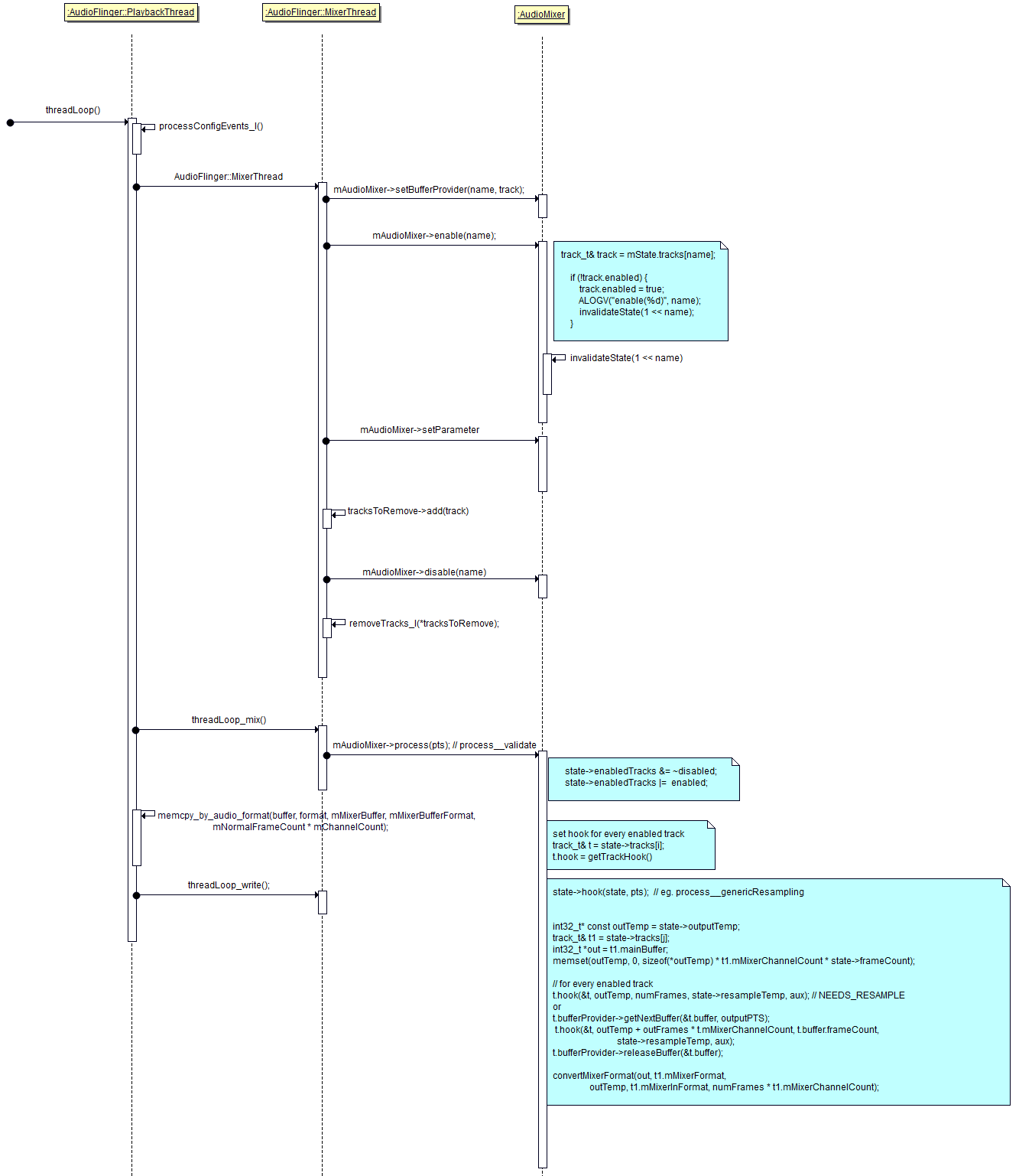 c. playbackThread使用obtainBuffer获得含有数据的内存, 使用数据后使用releaseBuffer释放内存