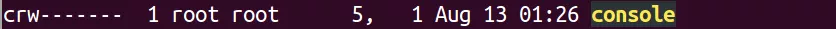 字符设备文件(类型为c),设备文件是没有文件大小的,取而代之的是两个号码:主设备号5 +次设备号1 。