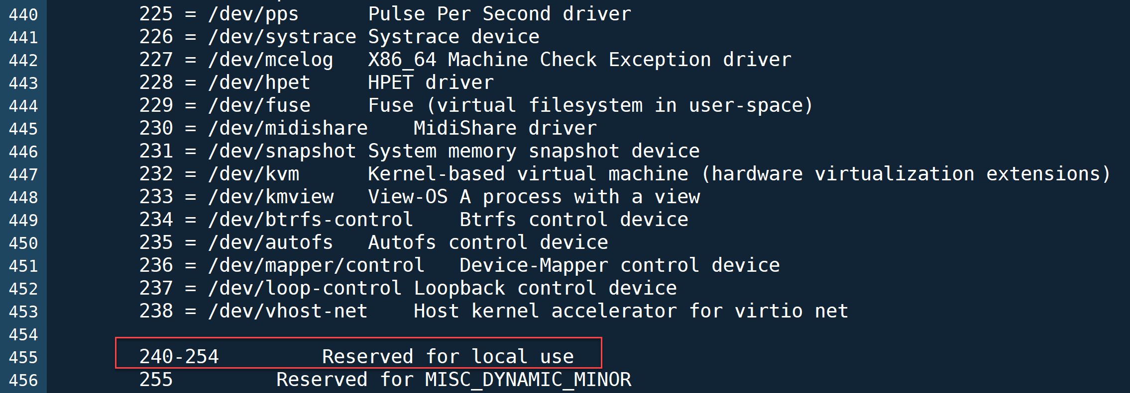 @name : 设备名称,执行 cat /proc/devices显示的名称