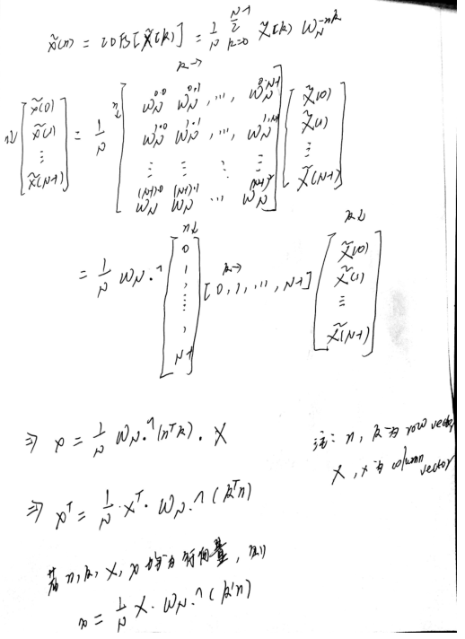 先看看分析式,使用MATLAB进行编程时,我们可以使用循环嵌套的方式编程,但是这样做不高效并且很麻烦,这不是我们提倡的做法,我们提倡使用向量化编程,我顺手推到了一下向量化编程的形式: