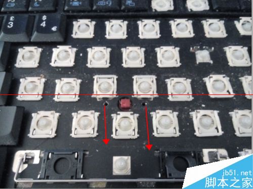 注意事项:键盘小红帽左右两边键帽下各有两个螺丝,小红帽对应的背部也有一个固定键盘的螺钉。