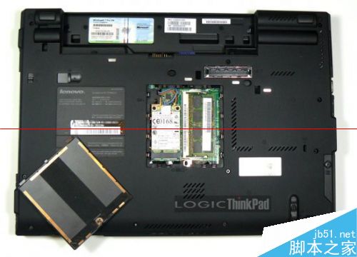 1、首先把t410翻过来,把电池先取下来。然后把背后的螺丝一个个的取下来,然后按照螺丝在机器位置的图样排列好,这样做的目的是不同位置的螺丝,他的长短是不一样的,所以事先按照拆解位置排列好,等装机的时候就不会乱了,不知道哪个螺丝是哪个位置的。