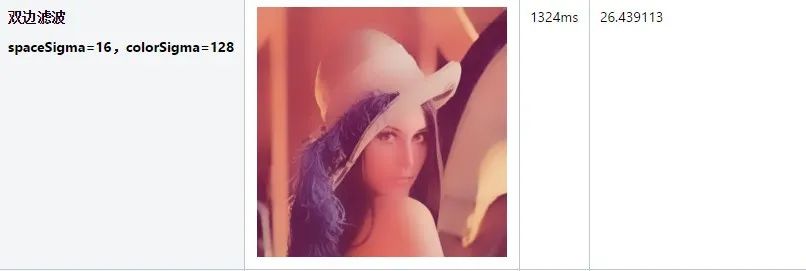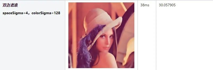 如果colorSigma相对于spaceSigma变小,说明卷积核更强调与中心点颜色接近的点。比如spaceSigma=16,colorSigma由128变为32时,可以看到边缘没那么模糊了。