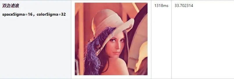 使用OpenCV时,如果不指定卷积核的尺寸,按照3通道sigma×6+1计算。因此计算此组图片时,当spaceSigma=4时,卷积核尺寸为25x25;当spaceSigma=16时,卷积核尺寸为97x97。