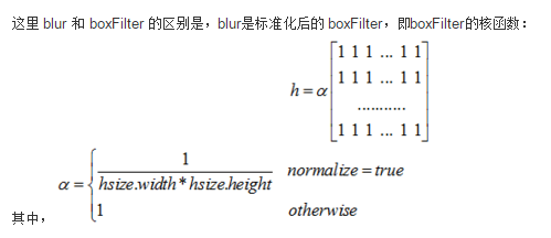 <span style="font-size:18px;">C++: void boxFilter(InputArray src,OutputArray dst, int ddepth, Size ksize, Point anchor=Point(-1,-1), boolnormalize=true, int borderType=BORDER_DEFAULT )