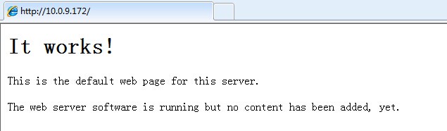 安装apache服务器之后,通过在浏览器中访问localhost,或者“http://你的服务器的IP地址/ ”来测试网站服务器是否正常工作,比如: http://10.0.9.172/。如下图