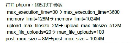实验证明:upload_max_filesize要改成1024M,方能上传四五百兆的软件。修改后重启apache2,用sudo /etc/init.d/apache2 restart