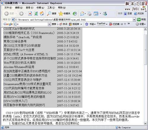 跨域显示远程XML数据,同时单击每行标题都能在当前页无刷新打开内容查看,甚好。