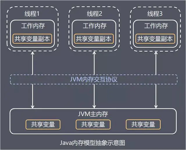 从整体上看,这2个步骤是线程1在向线程2发消息,这个通信过程必须经过主内存。线程对变量的所有操作(读取,赋值)都必须在工作内存中进行。不同线程之间也无法直接访问对方工作内存中的变量,线程间变量值的传递均需要通过主内存来完成,实现各个线程提供共享变量的可见性。