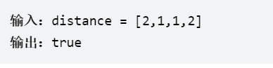 给你一个整数数组 distance 。从 X-Y 平面上的点 (0,0) 开始,先向北移动 distance[0] 米,然后向西移动 distance[1] 米,向南移动 distance[2] 米,向东移动 distance[3] 米,持续移动。也就是说,每次移动后你的方位会发生逆时针变化。判断你所经过的路径是否相交。如果相交,返回 true ;否则,返回 false 。