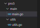 在工程pro5下有main和untils两个文件夹,在两个文件夹下分别有mian.go和untils.go两个文件。
