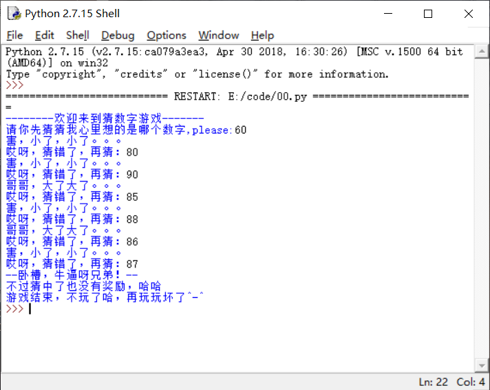 print("游戏结束,不玩了哈,再玩玩坏了^-^")