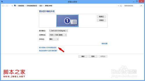 在“屏幕分辨率”面板中,我们选择底部的“放大或缩小文本和其他项目”选项。