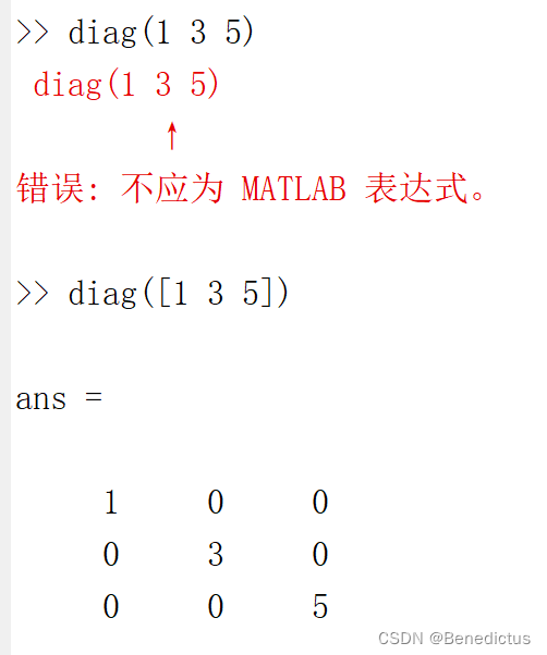 diag( [ ] )注意使用格式