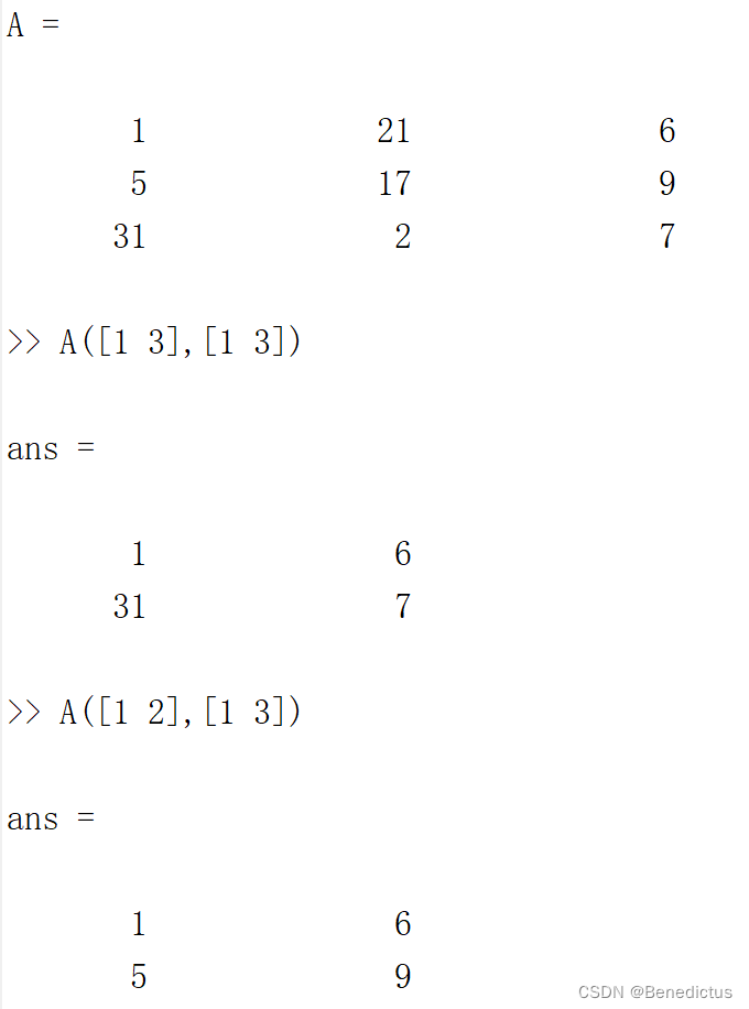 注意!如果是要抽出A矩阵中多个数值,中间应当加 [ ] !
