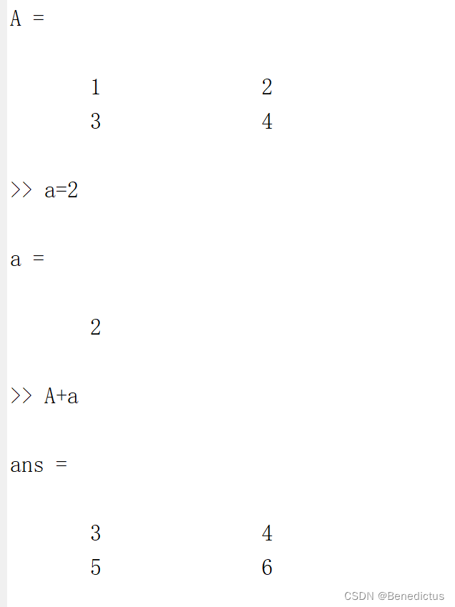 A+a(矩阵加一个实数等于每个值都加上实数a)