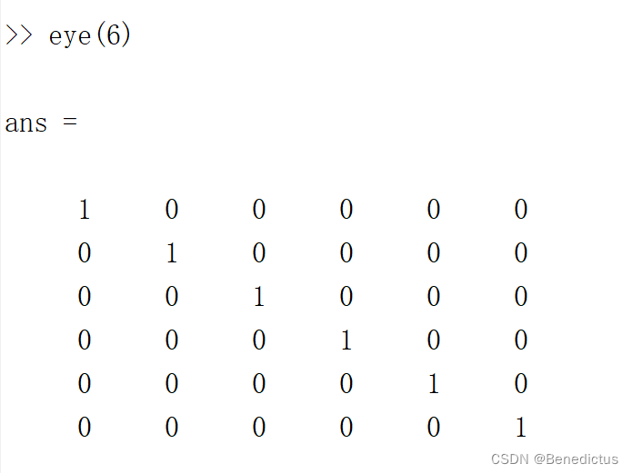 eye(n)矩阵为对角线全是1,其他全是0的矩阵