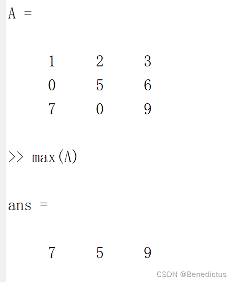 max(A)求矩阵A中每一列的最大值并形成新的矩阵