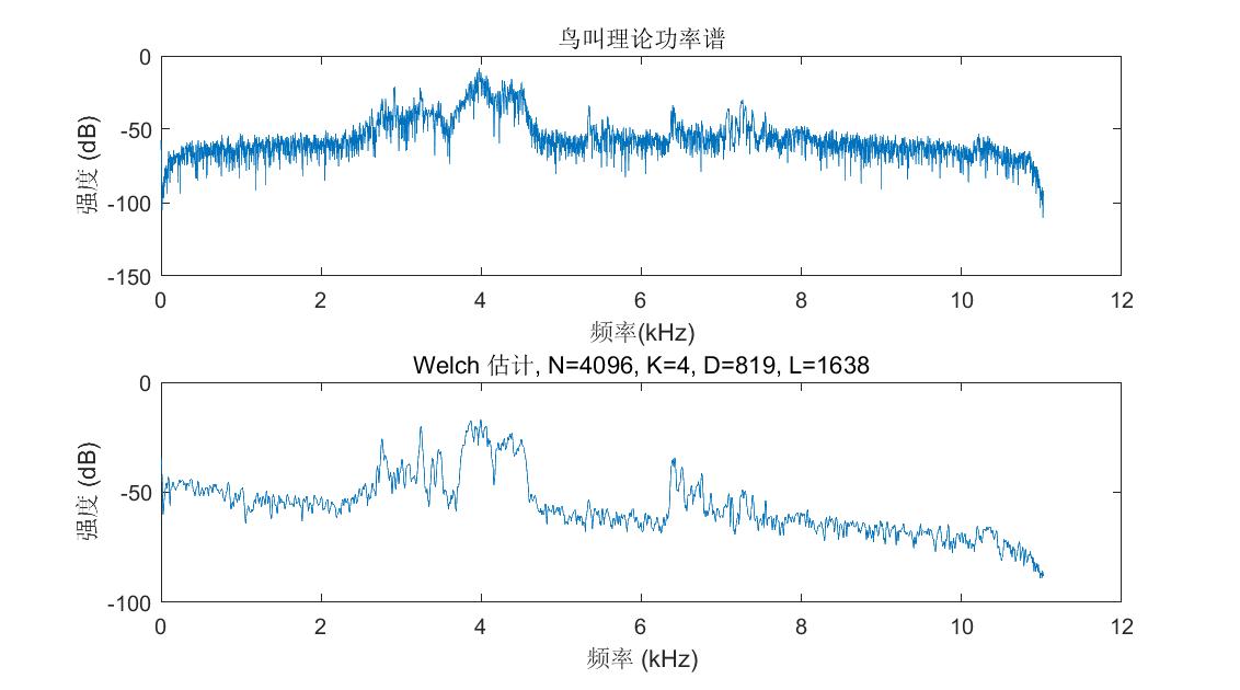 title('Welch 估计, N=4096, K=4, D=819, L=1638');