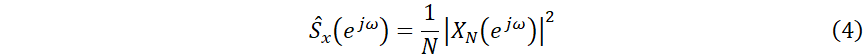 Schuster 于1899年首先提出周期图法,也称直接法,取平稳随机信号 X(n)的有限个观察值x(0),x(1),…,x(N-1)对功率谱S(ω)进行估计。