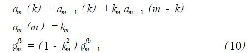 其中,R( m) = E[x( n) x( n + m) ]为信号序列 x( n) 的 自相关函数。 目前求解 Yule - Walker 方程主要有3 种: Levinson - Durbin 递推算法、Burg 算法和协方差方法。