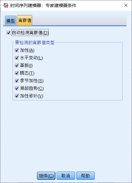 离群值全部勾选,选项那一部分是你想预测到什么时候