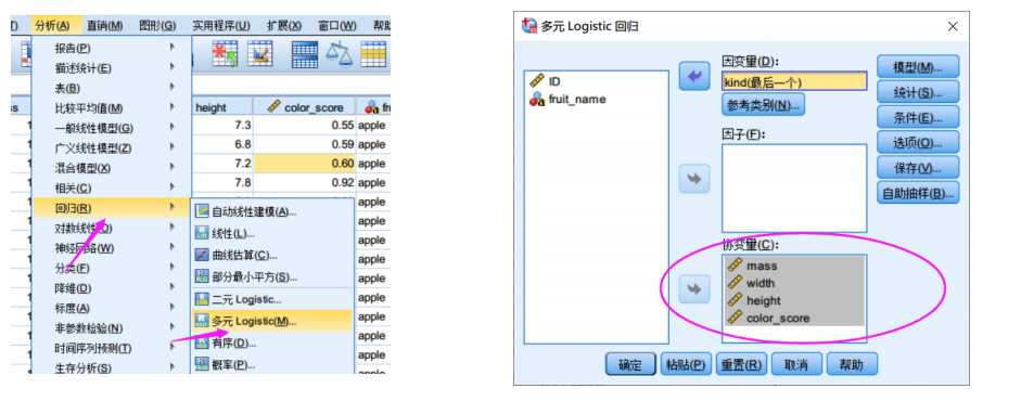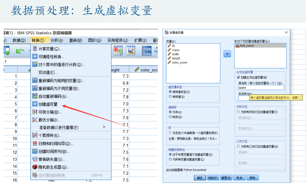 1.提前对数据进行处理(如类A设置为1,B为0)或在SPSS中设置虚拟变量