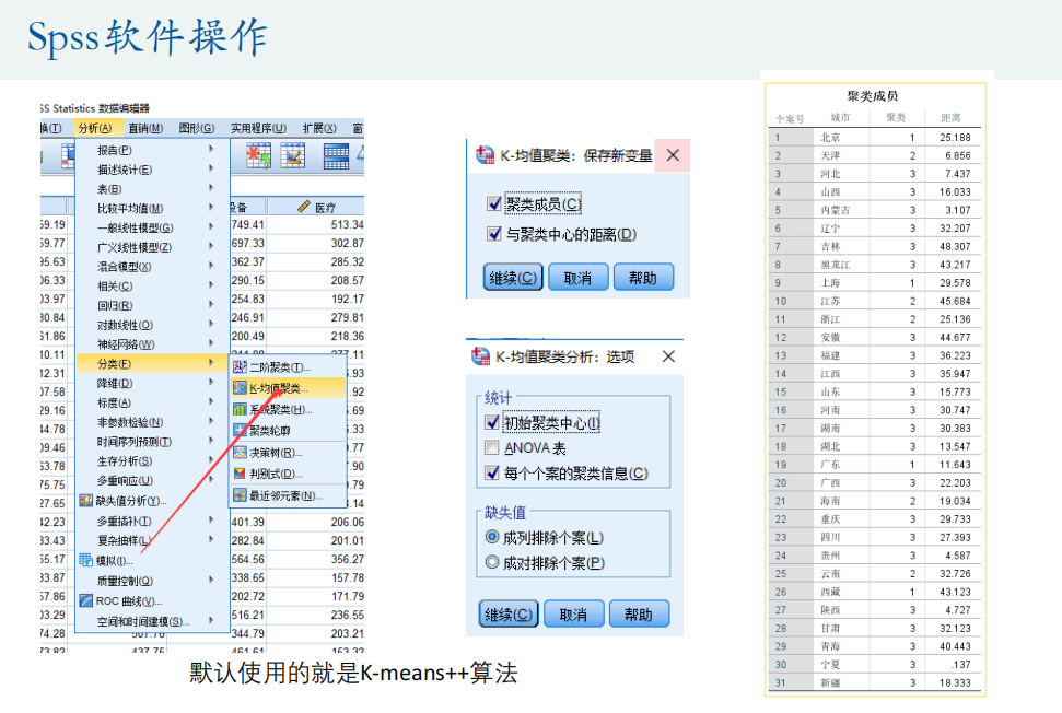 SPSS(++的区别就是聚类中心是轮盘法选出)