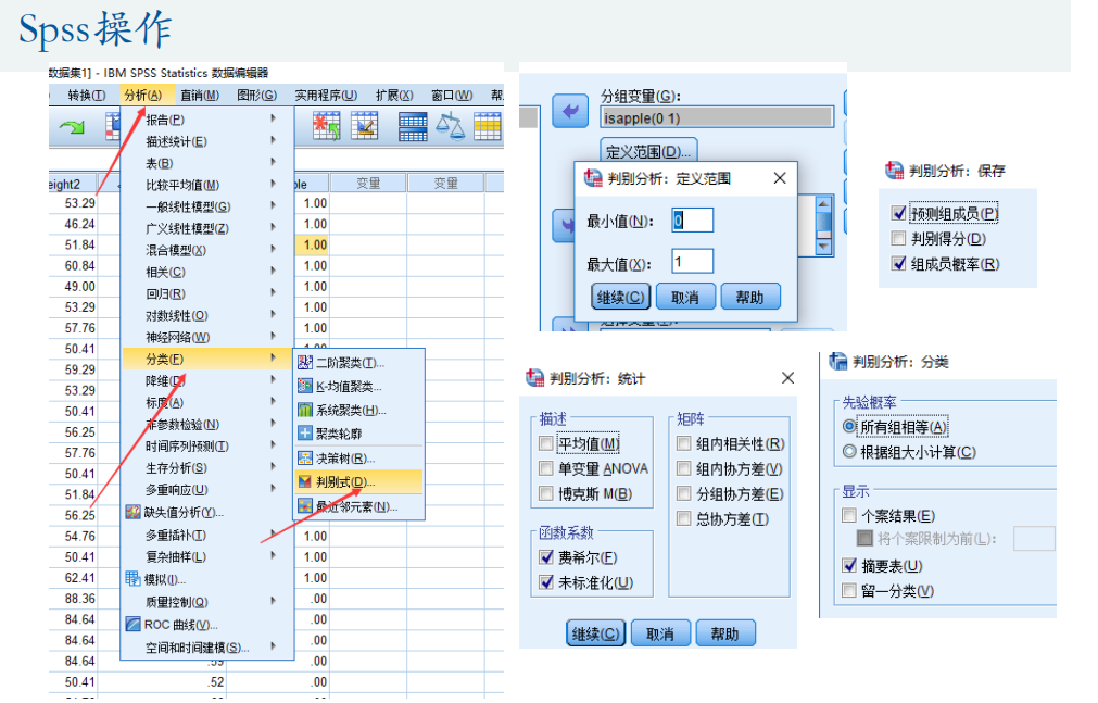 下表中典则判别函数系数即为超平面wx=0的w,分类函数系数见图