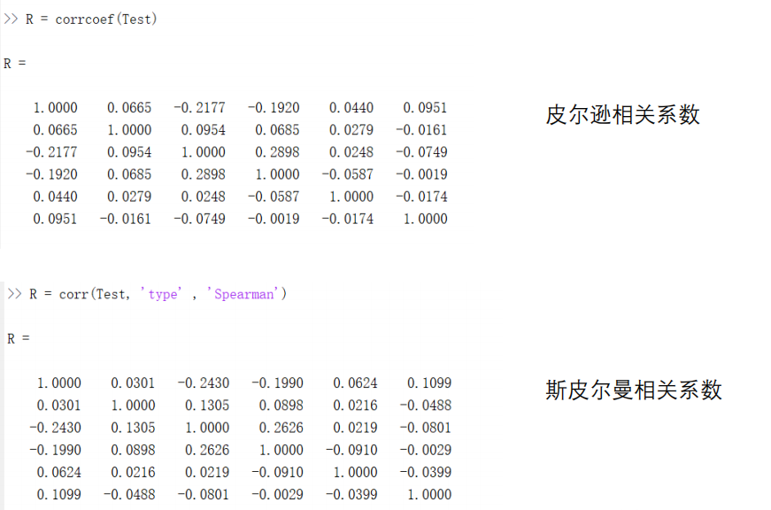 计算相关系数:[R,P] = corrcoef(Test) R为相关系数表,P为每个相关系数的p值