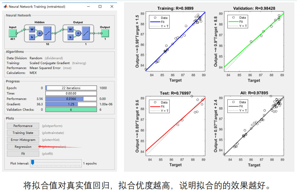 为了防止过拟合可以将数据分成训练集和测试集,通过调整神经元数量以及训练方法,使得SSEmin,之后再对新数据进行预测。
