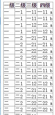<th>一级</th> <th>二级</th> <th>三级</th> <th>四级</th>